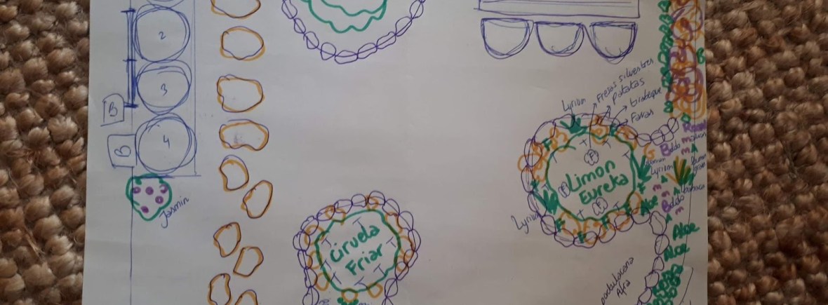 - Hice varias plantaciones durante los meses nov-diciembre 2017 (árboles y huerto de invierno) y de enero a junio he estado sembrando flores (girasoles, caléndula, clavel), plantando hierbas aromáticas (laurel, tomillo, romero, melissa, falso boldo, mentas varias…) y plantas perenne como aloe vera, lemon grass, lirios, geranios, vinca… Haré una lista exhaustiva con los nombres en Latín.