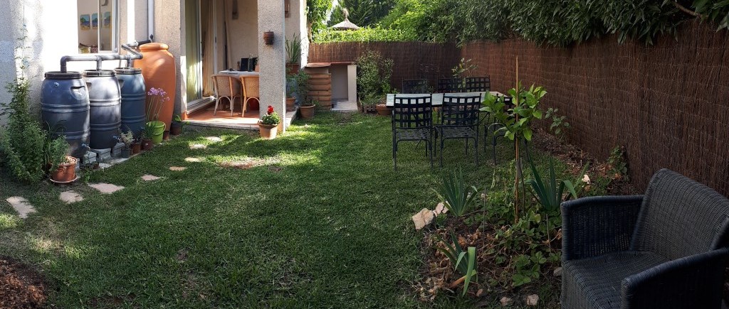 Por primera vez vivo en mi propio apartamento. Es de mi propiedad desde hace más de 10 años ya, pero lo tenía alquilado mientras yo vivía en el barco & en el campo. Ahora me toca estar aquí y por supuesto no pude aguantarme, querría transformar el cesped enseguida a un paisaje abundante, plantar, tener huerto, diseñar una vida exterior, aprovechar los recursos y los sectores que entran en mi espacio etc.