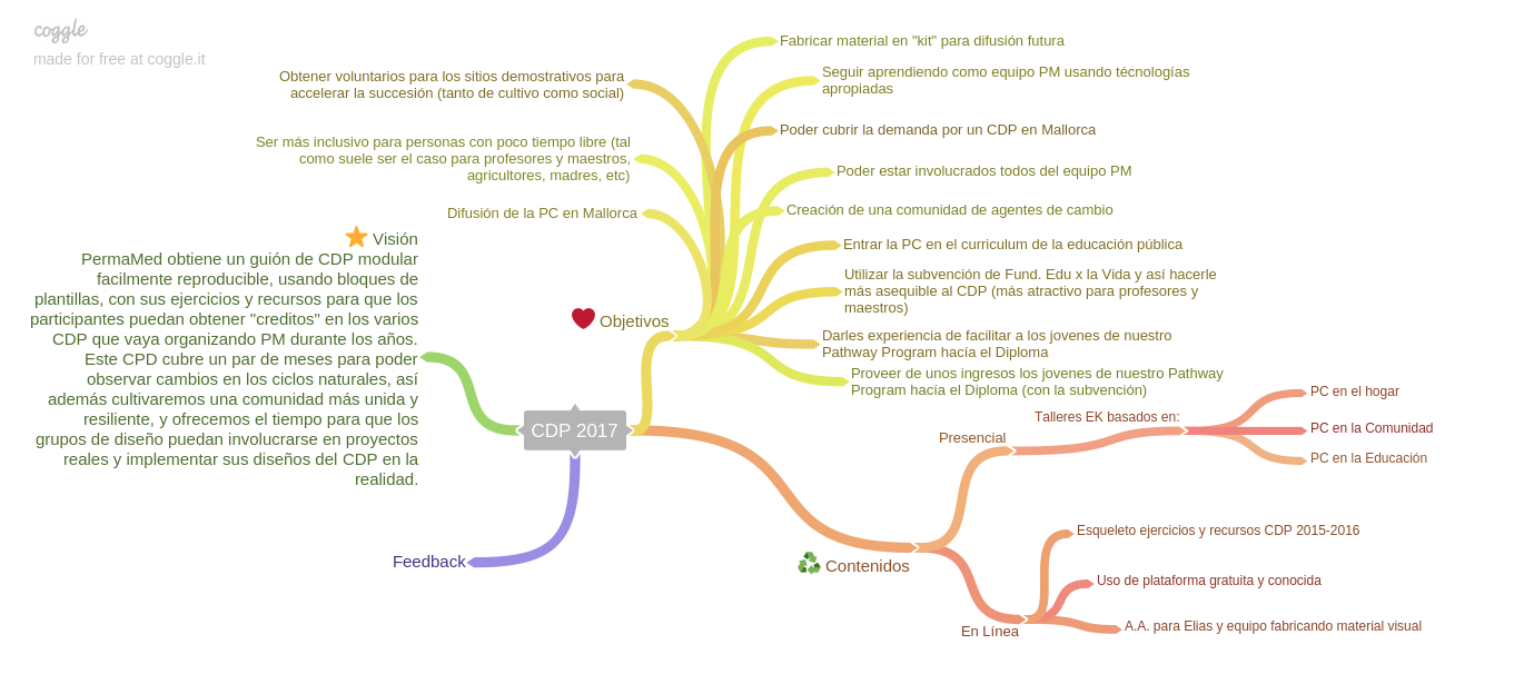 Ahora mismo somos ya también un equipo que trabaje de forma tan orgánica que dividimos todo por los dos sitios demo que tenemos, el trabajo de facilitar se divide entre las 3 (Mandy, Meiling y yo), la logística, marketing, papeleo, estructuras en línea etc también. Multi-funcionamos el conocer a una persona (diplomada) nueva a la asociación con renovar un poco los contenidos del curriculum y miremos de integrar otro sitio demo. Genial poder construir encima de una base ya firme, tanto de contenido y estructura, obviamente dandole los toques personales con nuestros propios aprendizajes (más profundos cada año!) y intereses; como de público interesado, la red que se está construyendo desde el comienzo de PermaMed hace casi 7 años (noviembre 2011). El día que lanzamos este CDP en el boletín ya tuvimos 2 pre-inscripciones. A ver cómo sigue.