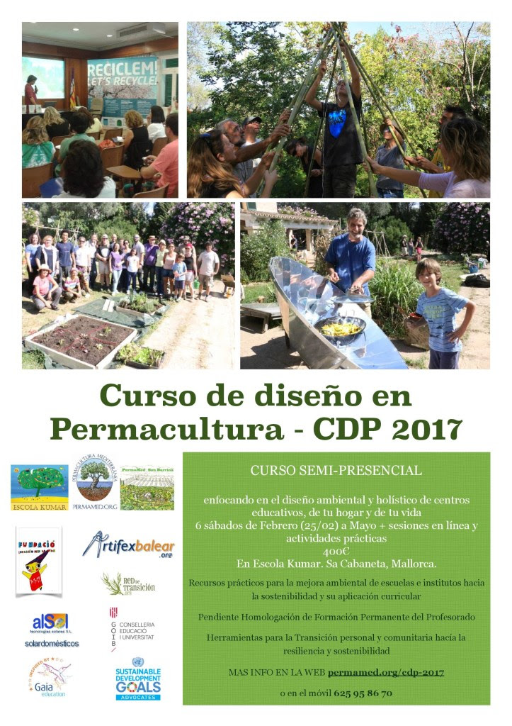 - Conexiones entre gente local buscando un cambio: Muchas veces se sientan solas con sus inquietudes las personas que buscan otro paradigma. Aunque a isla es pequeña, parece muy grande cuando estás intentando cambiar algo sola. Conectar a estas personas en Mallorca nos parece de lo más útil para la sucesión hacia una comunidad resiliente. Además ofrecemos una red de contactos de personas que ya está trabajando hacía el cambio, para que podemos ofrecer un apoyo a ellas, y para no duplicar esfuerzos. Puede ser que salga una idea para una eco-empresa en un CDP que ya fue diseñado y puesto en marcha por un grupo de gente de un CDP anterior. Conectamos a personas (a veces dentro del mismo pueblo sin que se conocieran!) para que sea más efectivo su energía aplicada y que crezca la inteligencia colectiva, sin que se diluye la esencia. A la vez ofrecemos un mercado a profesionales; conectamos un público con un maestro en su ámbito. Mallorca se está transformando y queremos hacer llegar la inspiración a todas las esquinas de la isla. Si por distancia les es incómodo venir muchas veces a nuestros sitios demostrativos, ahora podemos ofrecerles acompañamiento y apoyo de grupo en línea, a la vez achicando la huella ecológica por quitar un transporte del medio.